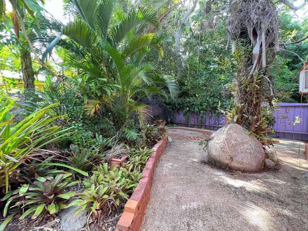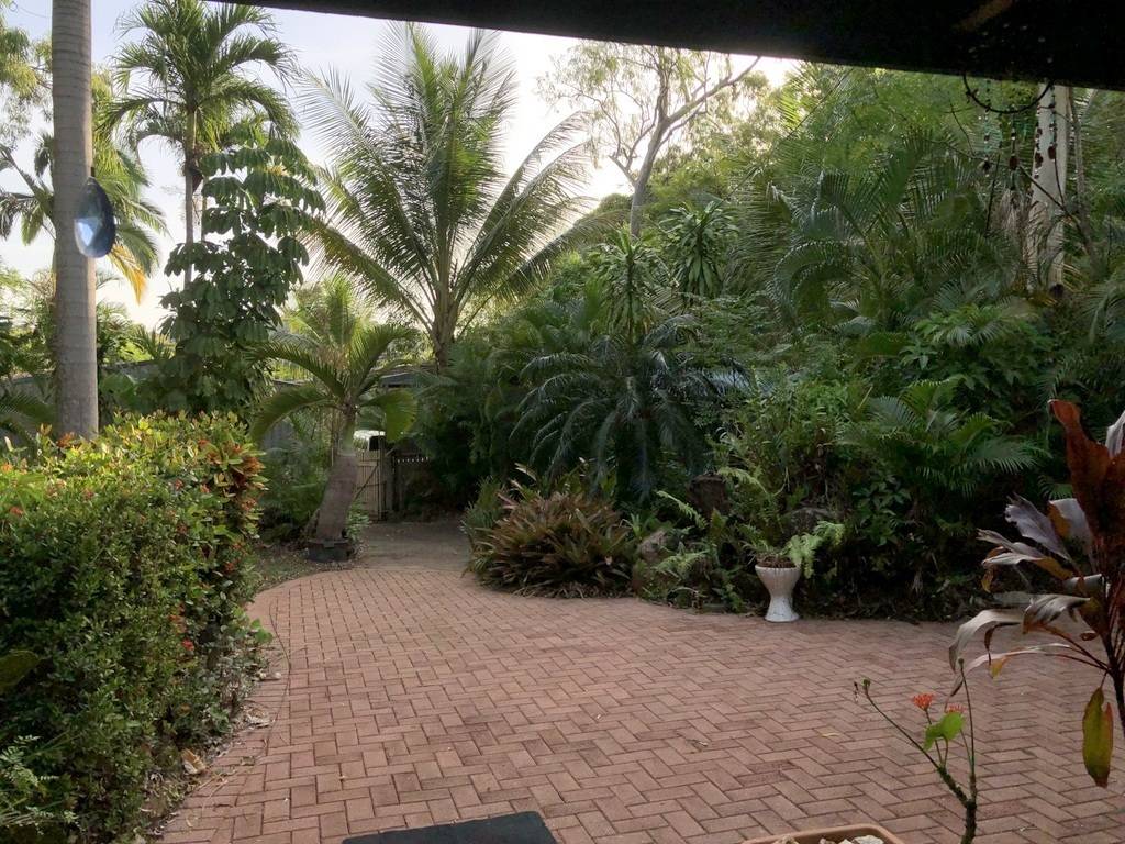 Paved courtyard and low maintenance tropical gardens – very little mowing needed