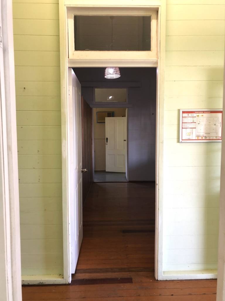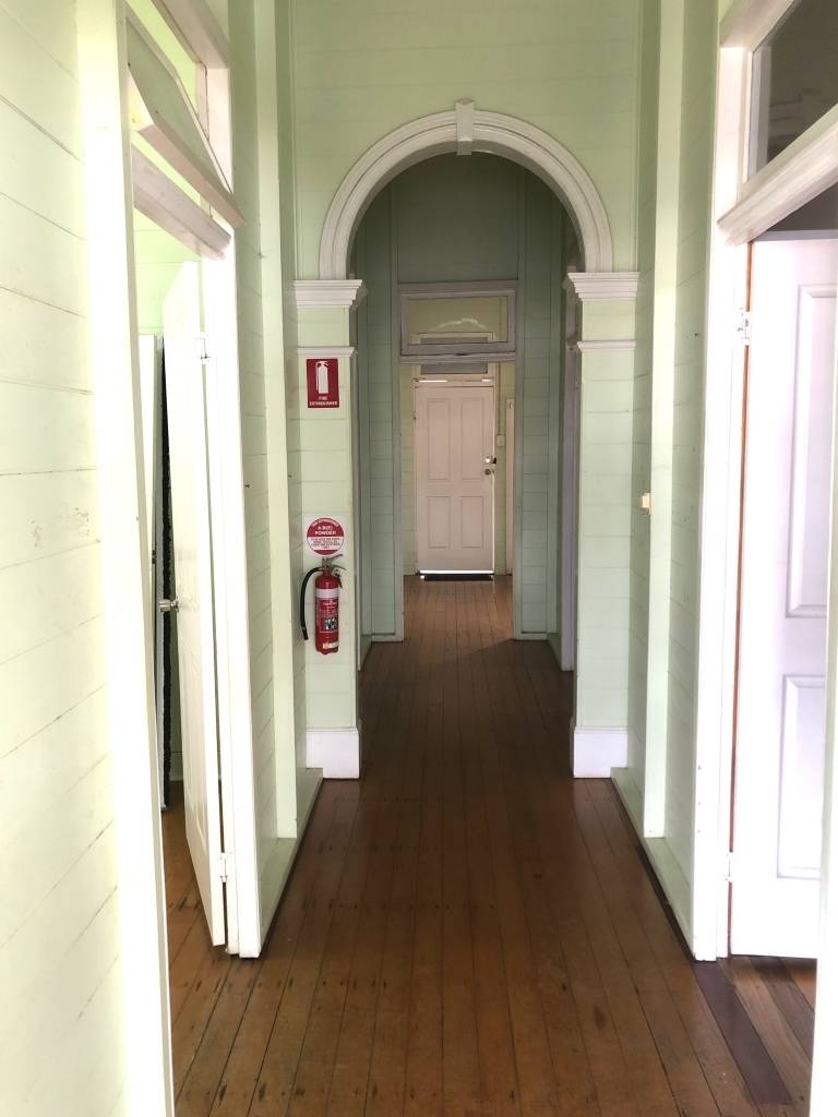 Previously operated as a real estate office, the property features three office spaces of varying sizes, bathroom facilities, and a separate private residence with ensuite—ideal for live-in professionals or dual-use commercial setups. High ceilings, a grand arched hallway, French doors and period details create a timeless ambiance steeped in local heritage.