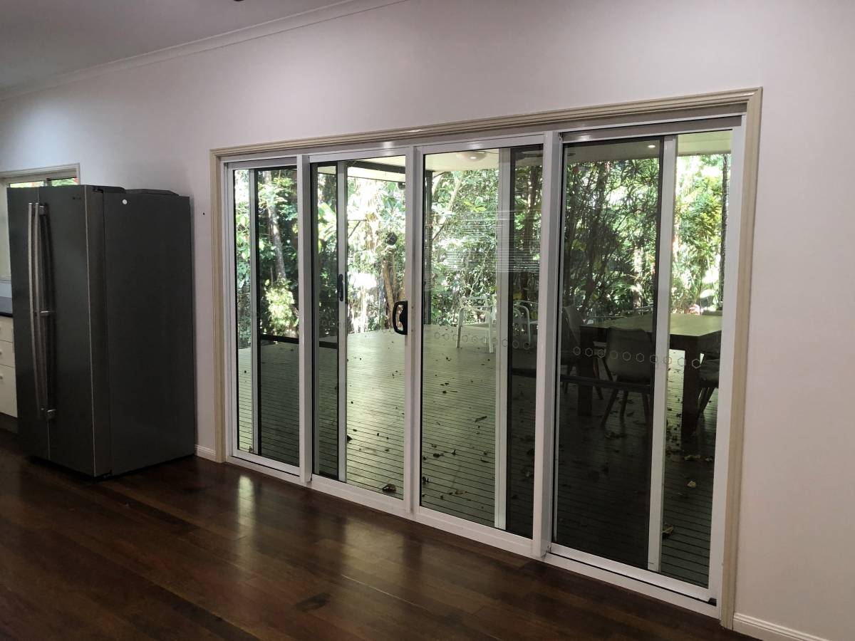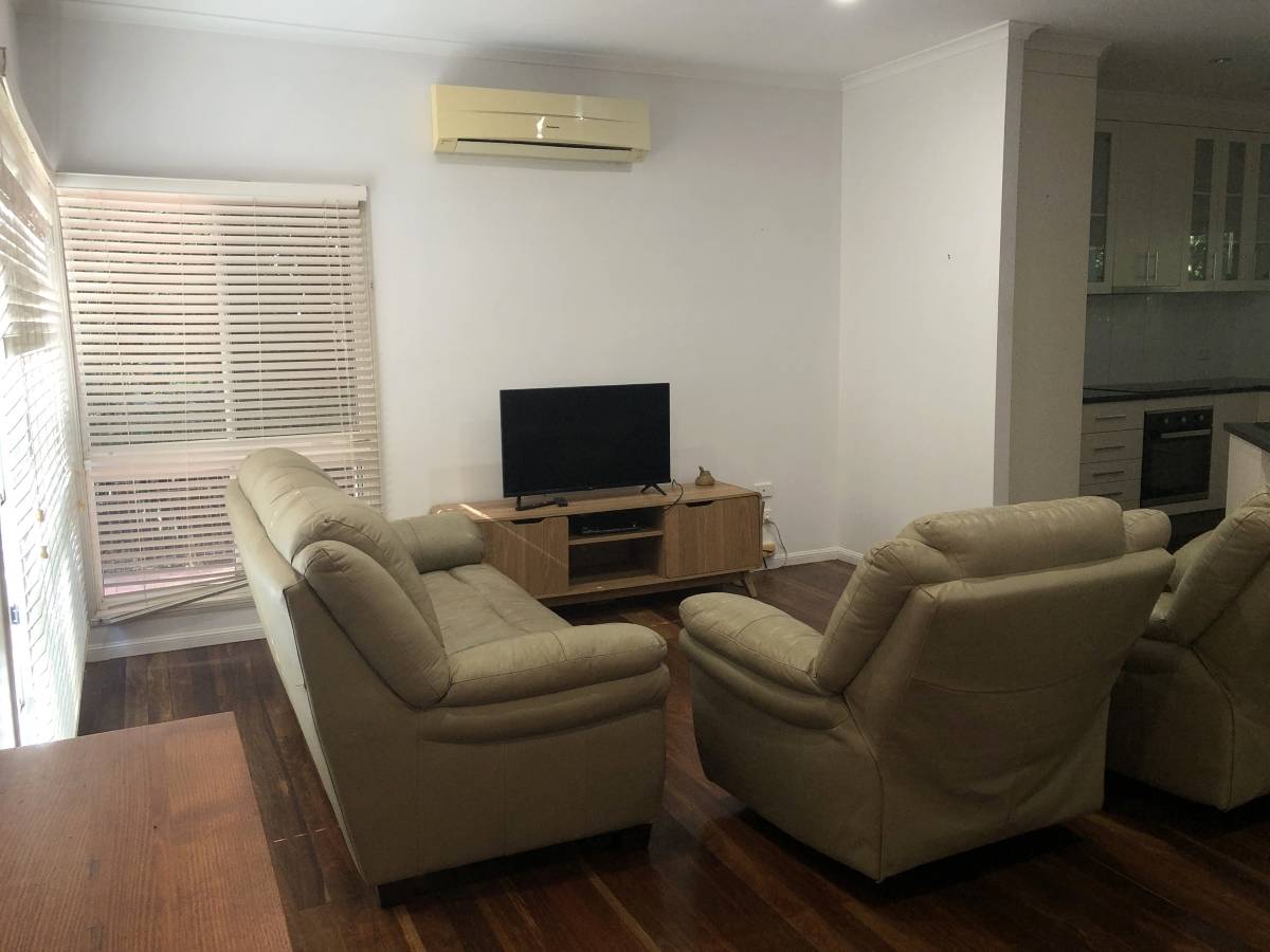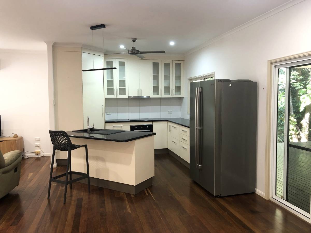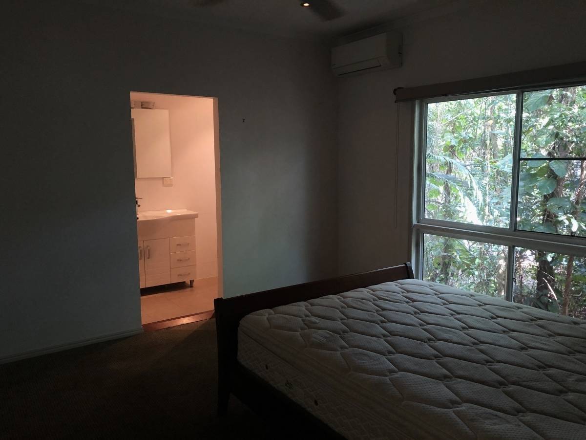 Fully air-conditioned throughout, the open-plan living and kitchen area showcases polished timber floors and flows seamlessly from the dining area onto a huge 8m x 8m back deck—perfect for entertaining or unwinding amid the lush rainforest backdrop.