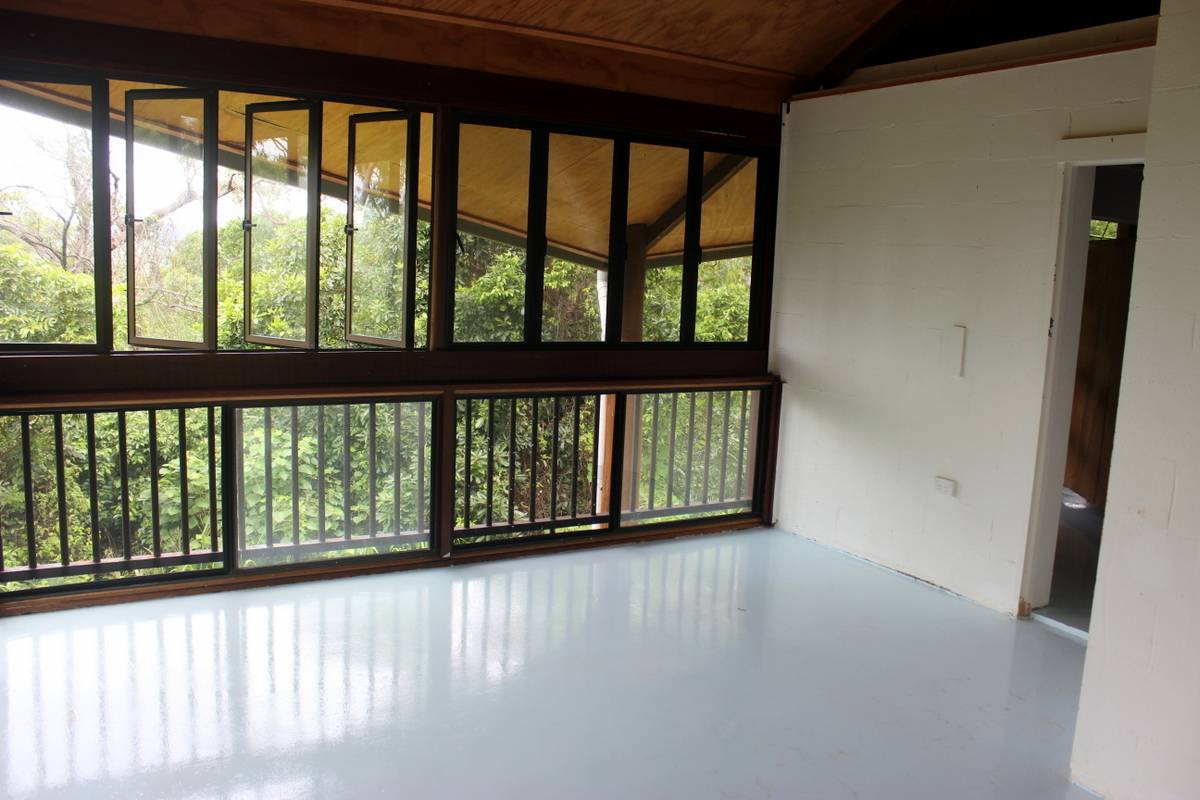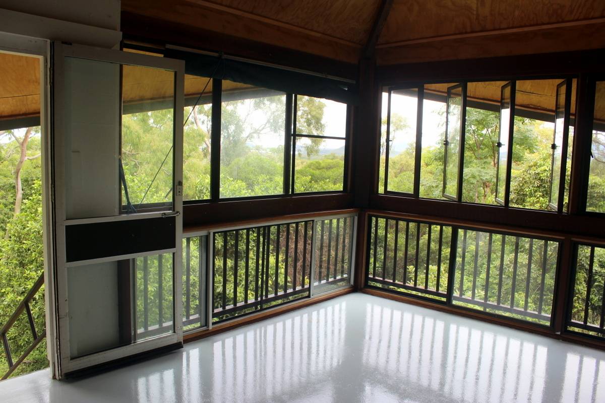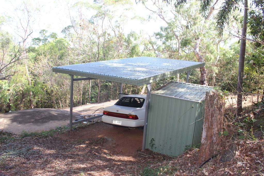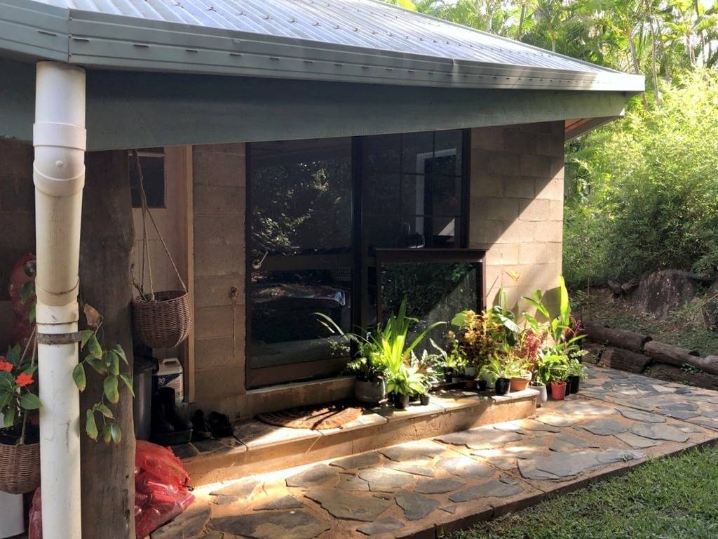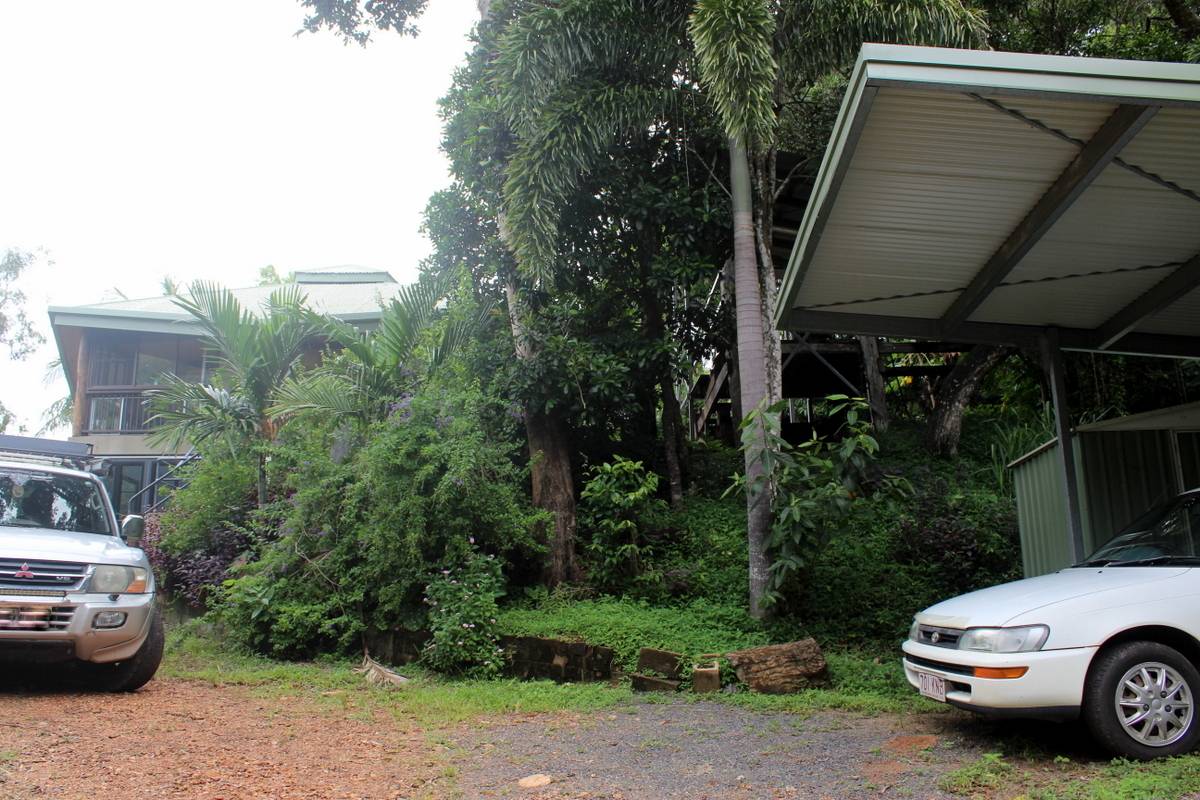Totally private and hidden on the hill, this 2 bedroom pole house with it's hexagonal roof line is totally unique in both its design and positioning. Upstairs is an enclosed front sun room or dining room with distant views through the trees to Walker Bay, a large lounge room, a sunken kitchen, bathroom and 1 bedroom while downstairs are the second bedroom and ensuite, and another room at the front that could be an extra bedroom, office/hobby room or family room. Serviced by rain water, there is a large concrete tank for collection which is then filtered and pumped into the overhead tank for the house use. A large garden shed and single carport complete the picture. The property is 2.04ha (5.03 acres) with the house situated on the elevated section at the western end of the block and the balance of the property mostly hillside and uncleared frontage onto the Mulligan Highway. A small area has been cleared at the bottom of the gravel driveway enabling storage of larger items out of view of the road and passersby. Power and phone are connected, and mobile service is available. Just a 5 minute drive north to town, Quarantine Bay and the Cooktown Golf Course to the east, and just minutes to the Annan River boat ramp to the south. Surrounded by natural bush, the birdlife is amazing and offers a relaxing reprieve from the stresses of the day while sitting in the al fresco patio area overlooking the tree tops.