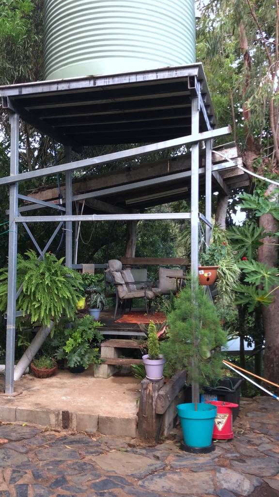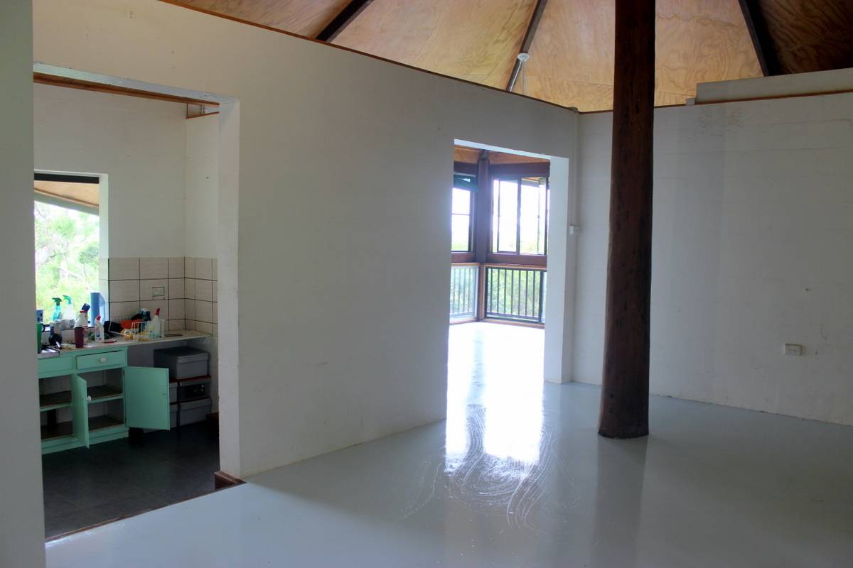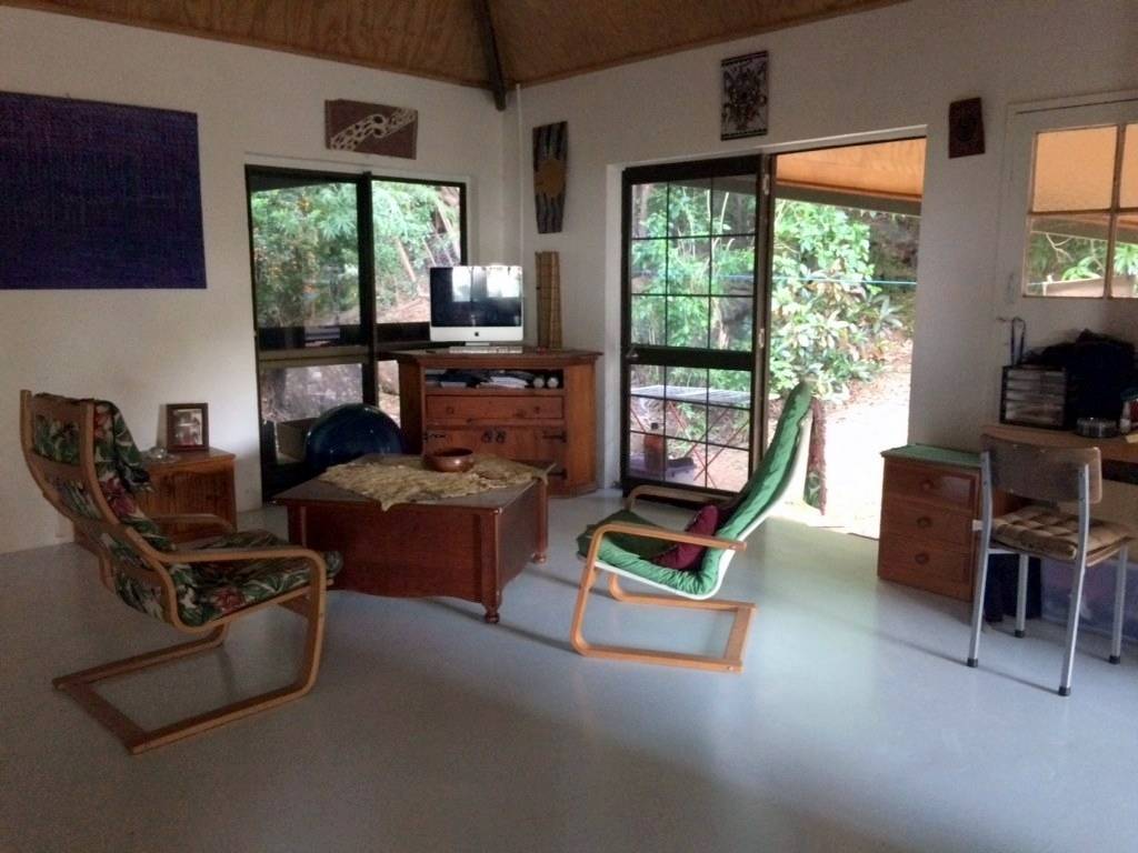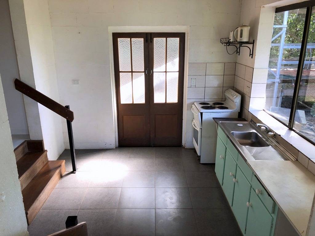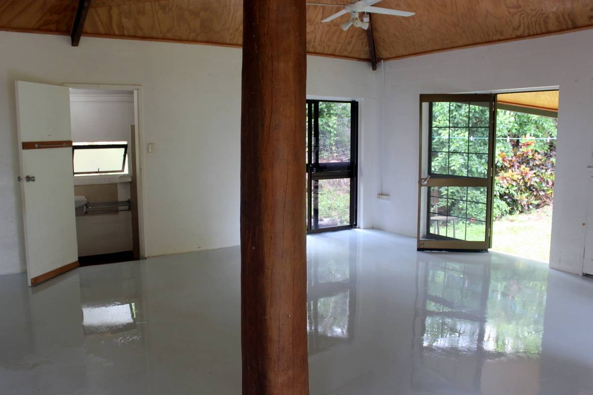 Totally private and hidden on the hill, this 2 bedroom pole house with it's hexagonal roof line is totally unique in both its design and positioning. Upstairs is an enclosed front sun room or dining room with distant views through the trees to Walker Bay, a large lounge room, a sunken kitchen, bathroom and 1 bedroom while downstairs are the second bedroom and ensuite, and another room at the front that could be an extra bedroom, office/hobby room or family room. Serviced by rain water, there is a large concrete tank for collection which is then filtered and pumped into the overhead tank for the house use. A large garden shed and single carport complete the picture. The property is 2.04ha (5.03 acres) with the house situated on the elevated section at the western end of the block and the balance of the property mostly hillside and uncleared frontage onto the Mulligan Highway. A small area has been cleared at the bottom of the gravel driveway enabling storage of larger items out of view of the road and passersby. Power and phone are connected, and mobile service is available. Just a 5 minute drive north to town, Quarantine Bay and the Cooktown Golf Course to the east, and just minutes to the Annan River boat ramp to the south. Surrounded by natural bush, the birdlife is amazing and offers a relaxing reprieve from the stresses of the day while sitting in the al fresco patio area overlooking the tree tops.
